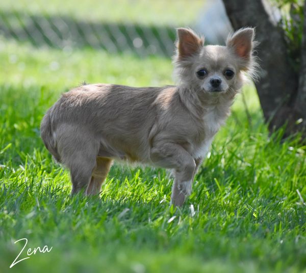 Keke is one of our up comings in our program. She is a long-hair black tri-colored applehead girl. Keke is a very loving girl and enjoys spending her days playing with her friends. She is registered with CKC, has been Embark tested and cleared.