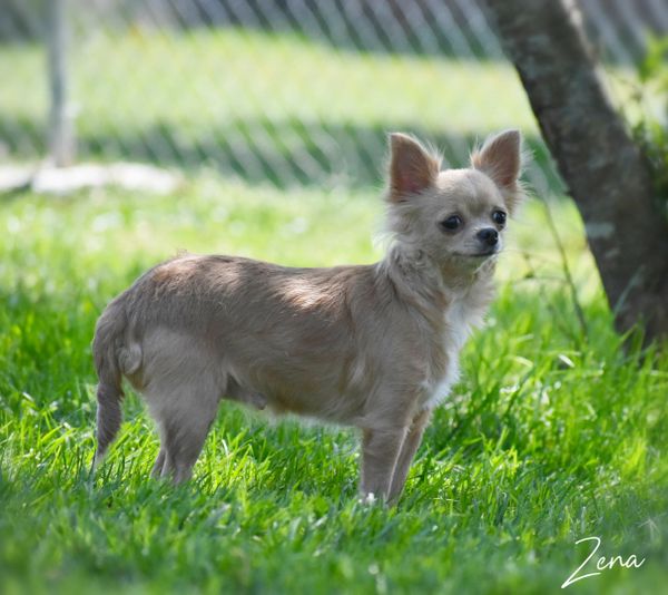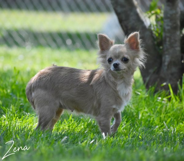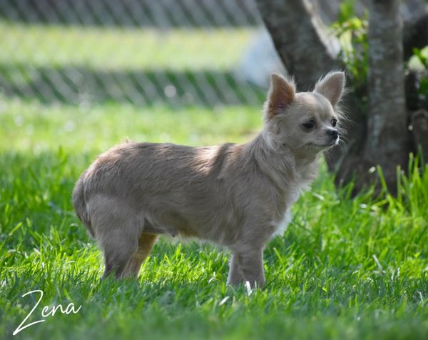 Meet Zena, she is our very silly girl and has a very outgoing personality. She has a perfect applehead and is a long-hair cream, who is 5.5 pounds. Zena is registered with AKC and has been Embark tested and cleared.